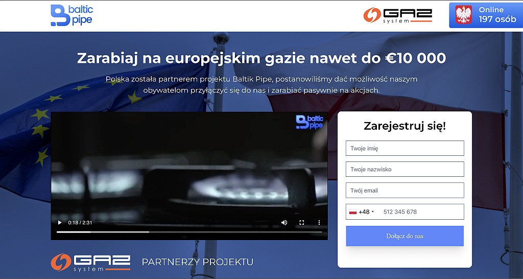 Natknąłem się na reklamę na Facebooku oferującą inwestycję w ten projekt. Teraz dzięki projektowi Baltic Pipe zarabiam 80 000 zł miesięcznie!